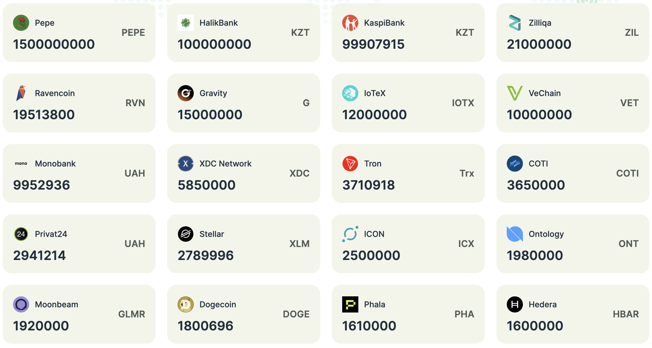 Major Supported Coins