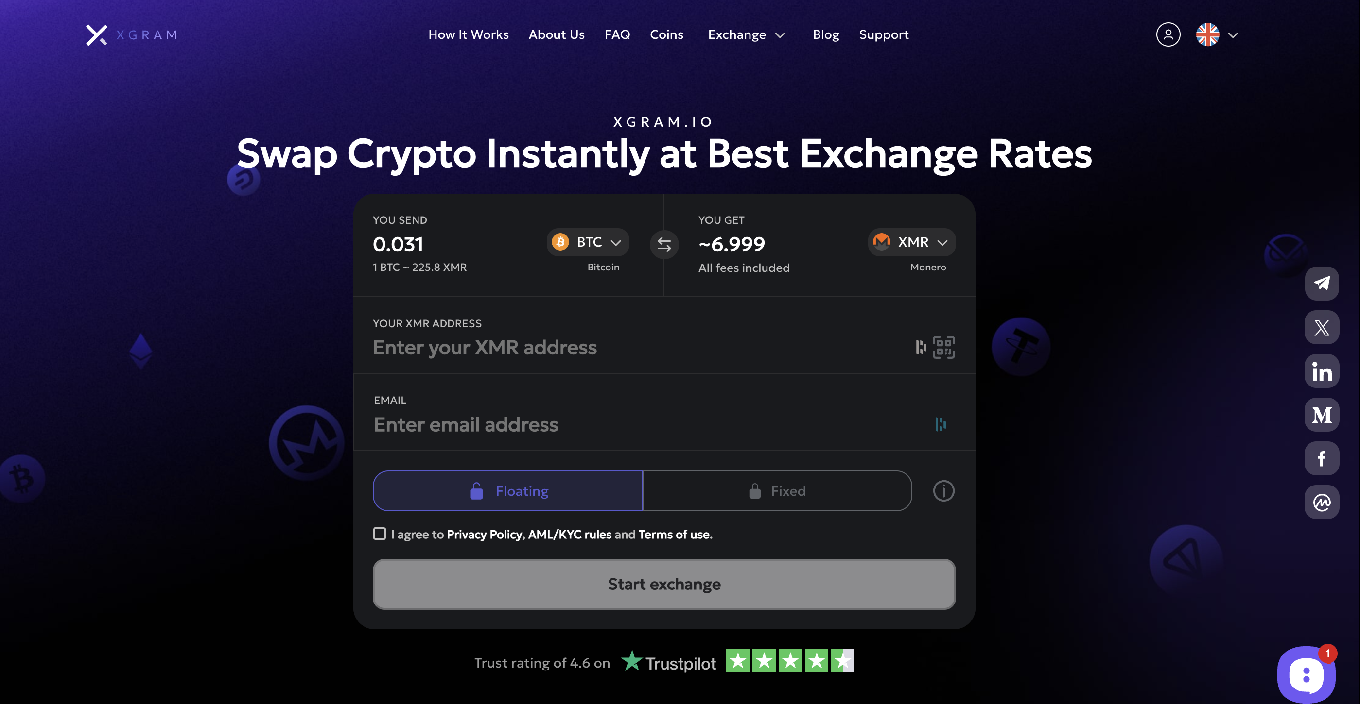 The platform supports more than 400 cryptocurrencies across major ecosystems such as Bitcoin, Ethereum, Tron, BNB Chain, Polygon, and TON. Its core selling point is convenience: select the coin you want to send, choose what you want to receive, and execute the swap with either a fixed or floating rate. Liquidity is sourced through a hybrid model that combines CEX and DEX pools, allowing Xgram to offer competitive pricing and fast confirmation times.